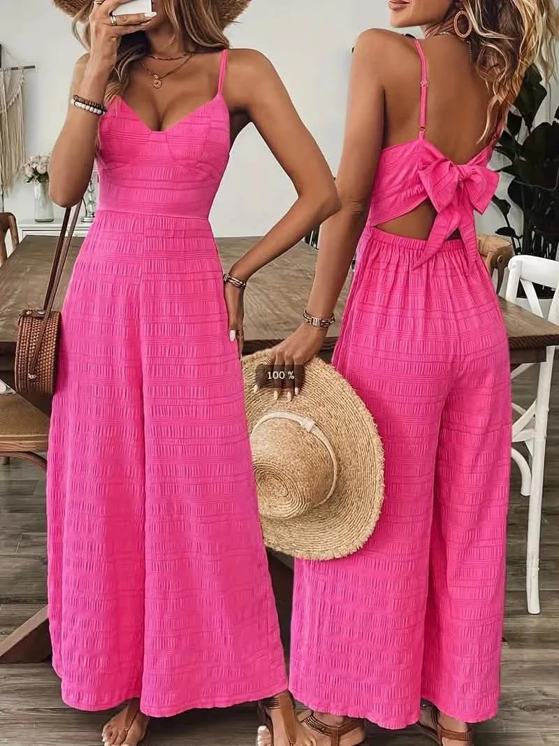 Our pink jumpsuit is the ideal choice for various events. Whether you're heading to a casual brunch, an evening out with friends, or a summer wedding, this stylish outfit has you covered. The vibrant pink color makes a bold statement, so you can stand out effortlessly. Additionally, its versatile design means you can accessorize it easily for different looks. Dress it up with heels and jewelry, or keep it casual with sneakers and a denim jacket. So no matter where you go, feel confident and trendy in our pink jumpsuit.