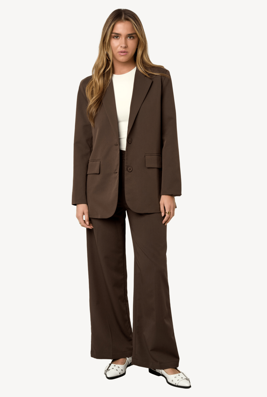 Deze stijlvolle oversized blazer in een diepe chocoladebruine kleur is een echte musthave voor jouw garderobe. Het rechte model en de relaxte pasvorm geven een moderne, effortless look, terwijl de klassieke reverskraag en dubbele knoopsluiting zorgen voor een tijdloze uitstraling.